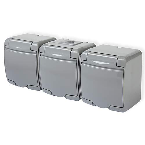 Aufputz Grau Schalter Doppelschalter Steckdose IP44 Feuchtraum Schuko (Steckdose 3-Fach)