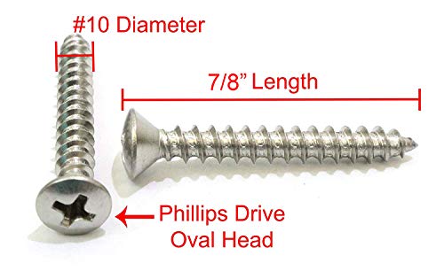 Maße: Durchmesser: #10 | Länge: 2,2 cm | Gewindeart: dickhäutig (Standard) | Spitze: Typ A | Kopf: ovaler Kopf | Antrieb: Kreuzschlitz | Absolutbetrag: 100 Bereich | Material: 18-8-304 Edelstahl