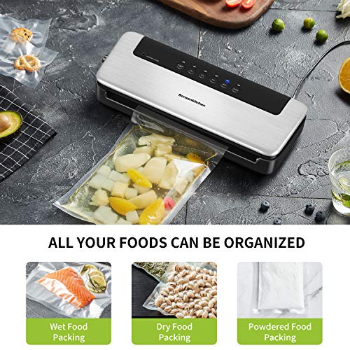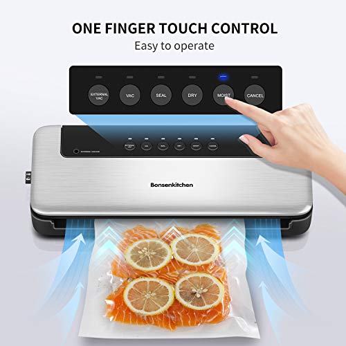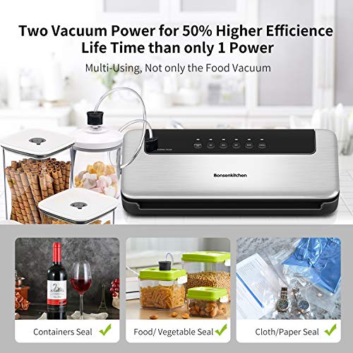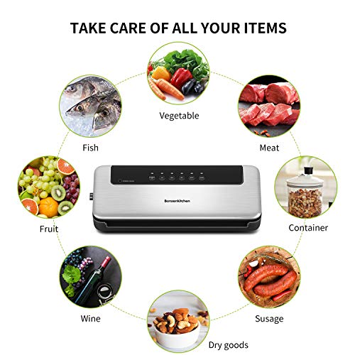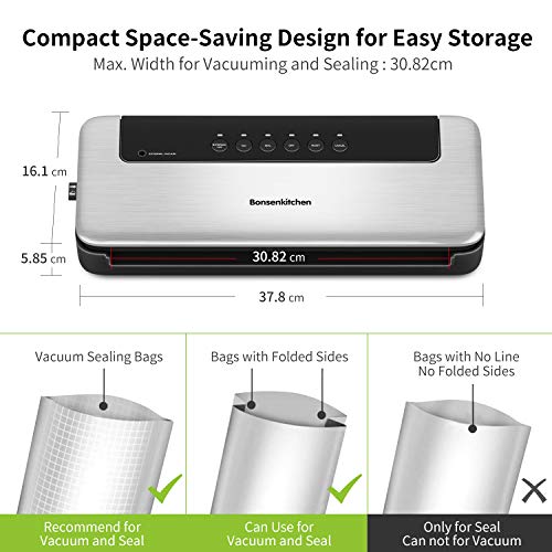 🍖 【5-in-1Vakumiergerät】: Umleiten Sie die Funktionen Trocken / Feucht / Vakuumdichtung / Externe Vakuumdichtung / Abdichtung, absolvieren Sie eine Vielfältigkeit von Anforderungen an die Lebensmittelkonservierung. Wir empfehlen die Verwendung von vakuumbeutel der Marke Bonsenkitchen. Aufgebraucht Vakuumbeutel mit einer Breite von abzgl. als 30cm können verwendet werden.