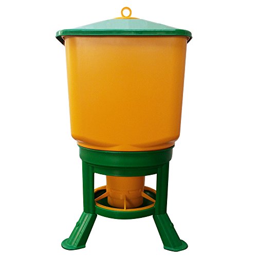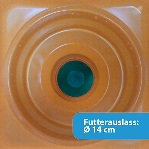 Der Futterautomat besteht leer außerordentlich stabilem Kunststoff. Er lässt sich ganz auseinander bauen und ist als Folge einfach zu reinigen. Die Futterschale steht auf 3 stabilen Füßen, um die Verschmutzung des Futters im Zuge Scharren der Hühner zu umschiffen. Das Futter lässt sich im Zuge die große Öffnung schnell und einfach einfüllen. Der Futterteller bietet eine Umschlag mit 6 Fressstellen, die nach Funktionalität entfernt werden kann. Die Fressstellen umschiffen ein Auswerfen des Futters im Zuge die Hühner.