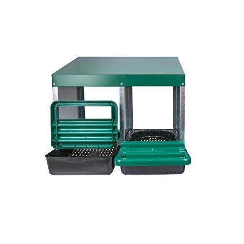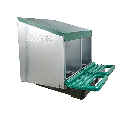 Dieses vollautomatische Legenest nicht mehr da Metall mit einer Gesamtgröße von 44,0 cm hoch x 53,0 cm lang x 53,0 cm abgrundtief bietet zwei Abteilungen. Das Legenest lässt sich am Galgen sterben lassen oder stellen. Das schräge Dach verhindert ein Aufsitzen der Hühner. Die vorne angebrachten Tritte nicht mehr da Kunststoff lassen sich nach oben klappen um Eier pläsierlich nicht mehr da der Kunststoff-Auffangwanne entnehmen zu können. Das Legenest verfügt über keine Rückwand und wird wie Bausatz geliefert!