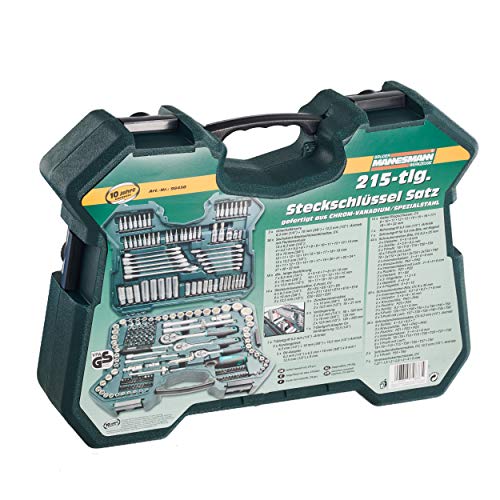 Mannesmann 215-teiliger Mammutkoffer 1/4″ – 6,3 mm, 3/8″ – 10 mm darüber hinaus 1/2″ – 12,5 mm, M98430