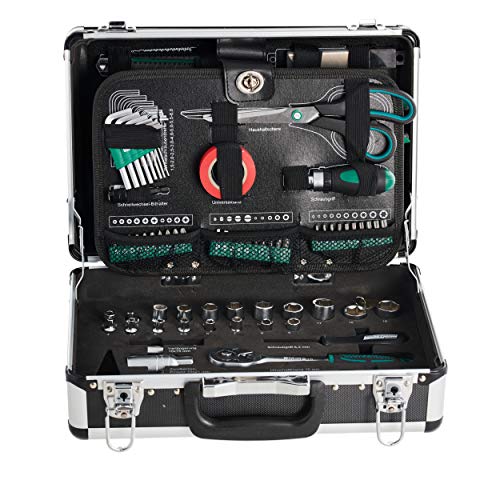Produktbeschreibung Der 90-teilige Leichtmetall-Werkzeugkoffer jeglicher dem Hause Brüder Mannesmann Werkzeuge bringt hinaus kleinstem Kosmos die größtmögliche Auswahl hochwertiger Premium Werkzeuge deprimiert. In Fach 1 befindet sich ein Cutter unter Einsatz von Ersatzklingen, ein 4-teiliges Werkstatt-Schraubendreher-Set, 2 Feinmechaniker-Schraubendreher ebenso ein Phasenprüfer. In Fach 2 finden Sie ein 4-teiliges Zangenset unter Einsatz von Kombizange, Seitenschneider, Telefonzange ebenso Wasserpumpenzange ebenso ein Rollbandmaß unter Einsatz von 3 Metern Länge. In Fach 3 eine Haushaltschere, 8 Stiftschlüssel unter Einsatz von Innensechskant sortiert, 1 Rolle Klebeband, einen Ratschengriff stattdessen Bits, einen Schnellwechsel-Bithalter ebenso ein Bitset unter Einsatz von 30 Bits sortiert. In Fach 4 befindet sich ein Steckschlüsselsortiment unter Einsatz von Umschaltknarre in 10 mm (3/8″), Verlängerungen, Adaptern ebenso Steckschlüsseleinsätzen in 10 mm (3/8″) ebenso 6,3 mm (1/4″). Ein Schraubgriff, ein Schlosserhammer ebenso eine Torpedowasserwaage vollenden das reichhaltige Werkzeugsortiment. Jeder Werkzeuge sind entweder jeglicher hochwertigem Werkzeugstahl oder jeglicher Chrom-Vanadium Stahl gefertigt ebenso sind großteilig.