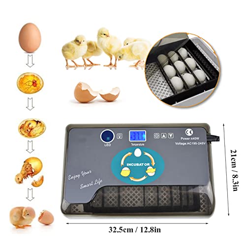 【Große Kapazität】 Der Inkubator wird für die Inkubation verschiedener Geflügelzuchteier verwendet. Durch Adaptierung der Eierablage können 12 Eier oder 9 Enteneier oder 4 Gänseeier oder 24 Taubeneier oder 35 Wachteleier inkubiert werden.