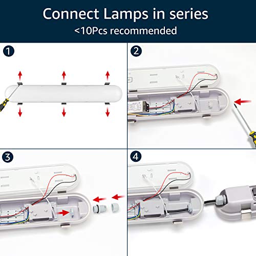 REIHENSCHALTUNG: Die LED Feuchtraumleuchte mit einer 50 W Röhre ist geeignet für Serien- und Parallelschaltungen.