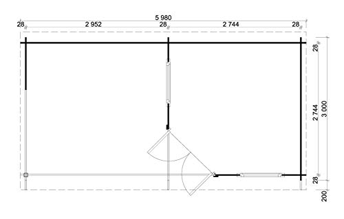 ✔️ MASSIVE DACHKONSTRUKTION: Die Dachkonstruktion des Holzhauses besteht jeglicher massiven Dachbalken und 18 mm starken Nut- und Federbrettern.