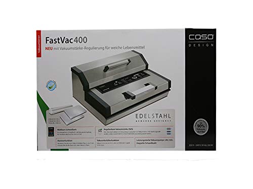 Vollautomatisches Vakuumiersystem für den professionellen gewerblichen Einsatz im Lebensmittelbereich. Ideal für Fleisch, Fisch, Gemüse und Obst. Mit dem Caso FastVac 400 können Sie Beutel und Rollen bis 40 cm Breite nutzen. Die doppelte Schweißnaht und eine starke Vakuumpumpe mit 20 l/Minute garantieren gute Vakuumergebnisse. Lebensmittel sind vakuumiert bis zu 8x länger frisch !