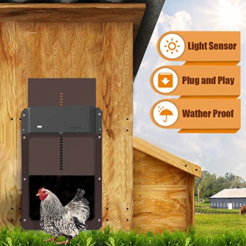 Lichtsensor: Die automatische Stalltür ist der Traum eines jeden Hühnerbesitzers. Diese Hühnerstall-Tür mit Lichtsensor kann so eingestellt werden, dass sie sich bei Dämmerung abstrahieren und bei Sonnenaufgang öffnen lässt, um Ihre Hühner ohne Lücke zu schützen und sie vor Schäden durch wilde Tiere zu umschiffen