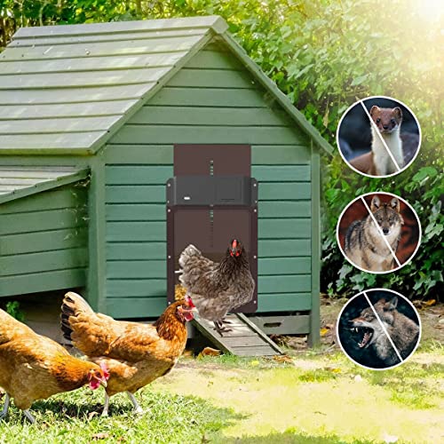 Größe: Die Größe des automatischen Hühnerstalls beträgt 35 x 25 cm und die Innentür ist 30 x 20 cm, groß genug stattdessen bis zu allen Größen von Hühnern, Hühnern, Enten usw. Die Hühnertür kann Ihre Hühner (Enten etc.) vor Raubtieren denn Wieseln, Schwarzbären und Stinktieren schützen
