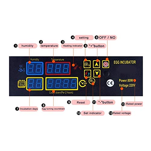LED-Anzeige: LED-Anzeigen Temperatur, Luftfeuchtigkeit, Schraffingtag, Eierdrehzeit 110V / 220V.
