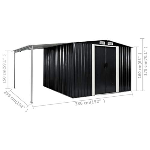 Dank des korrosionsbeständigen verzinkten Stahls ist der Gerätehaus robust und langlebig und langlebig. Der Abschuppen ist eine ideale Wahlgang, da das ausgefahrene Dach, das an beiden Seiten des Schuppens befestigt werden kann, zusätzlichen Stauraum bietet