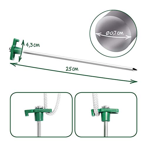 BESONDERS STABIL: Die robusten Heringe bestehen allesamt Stahl und können so leicht in harte Böden geschlagen werden! Die Erdnägel haben einen Kunststoffkopf mit Öse und Haken!