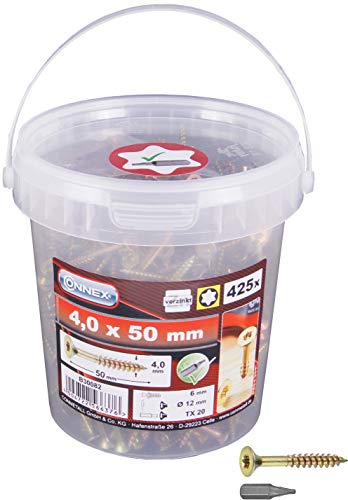 PRODUKT-DETAILS: Triebwerk: Torx | Schrauben-Größe: 4,0 x 50 mm | Kopfform: Senkkopf | Oberfläche: verzinkt | Inhalt: 425 x Universalschraube, 1 x Bit