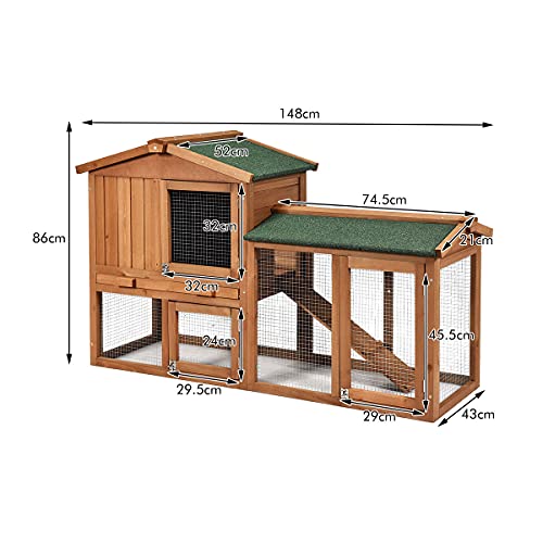 【Ideale Umgebung für Kleintiere 】Mit den Maßen 148 cm x 52 cm x 86 cm (L x B x H) ist dieser Kleintierstall ganzjährig das perfekte Zuhause für Ihre Kaninchen, Hühner und Meerschweinchen.