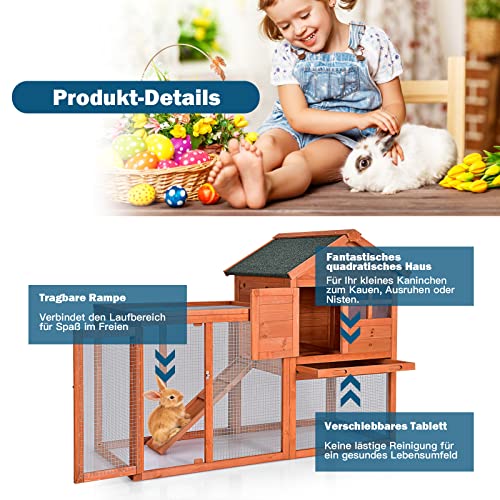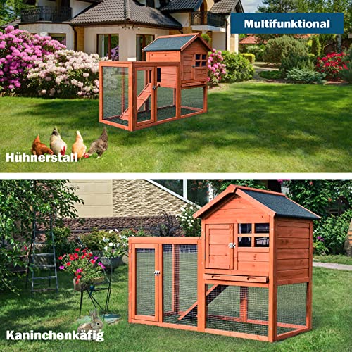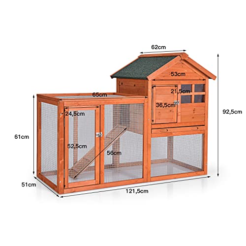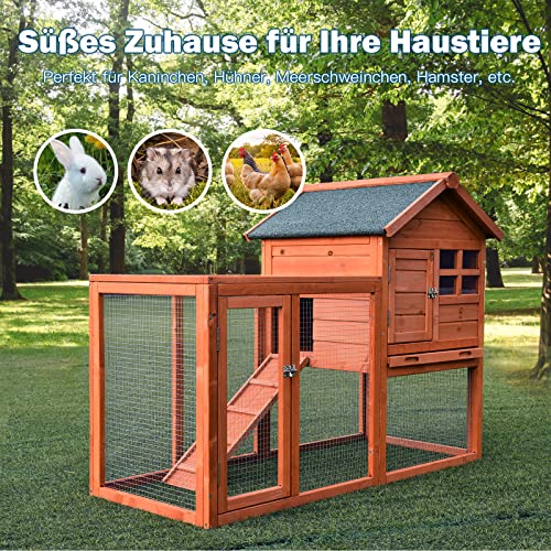 COSTWAY Hühnerstall Holz Hühnerhaus wetterfest Kaninchenkäfig mit ausziehbarem Tablett, Hühnervoliere für Kaninchen…