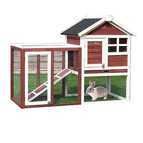 【2 GESCHICHTEN VIEL PLATZ】 Dieser geräumige Kaninchenstall verfügt über einen Hauptraum zum Wohnen und Schlafen, eine seitliche Terrasse zum Spielen und eine untere Etage zum Herumlaufen, was bedeutet, dass Ihr Kaninchen oder ein anderes kleines Tier reichlich Platz zum Ausstrecken hat.