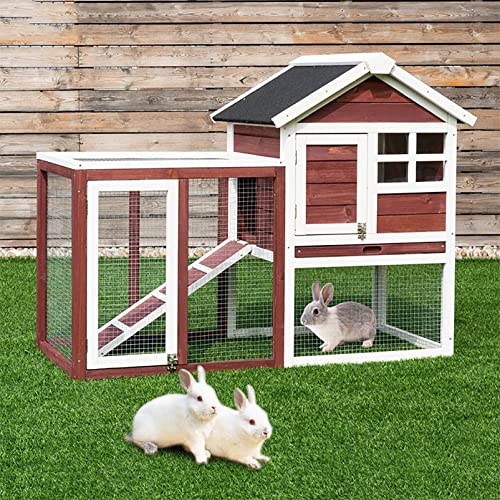 【2 GESCHICHTEN VIEL PLATZ】 Dieser geräumige Kaninchenstall verfügt über einen Hauptraum zum Wohnen und Schlafen, eine seitliche Terrasse zum Spielen und eine untere Etage zum Herumlaufen, was bedeutet, dass Ihr Kaninchen oder ein anderes kleines Tier in Hülle und Fülle Platz zum Ausstrecken hat.