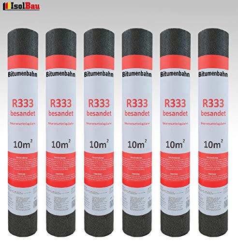 Isolbau Dachpappe R333 besandet – Bitumenbahn mit Rohfilzeinlage zur Dachabdichtung – 60 m² (6 Rollen)