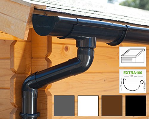 Für Ihr Gartenhaus, Ihre Veranda, Ihre Überdachung oder ein anderes Gebäude mit einem abschüssigen Pultdach benötigen Sie gleichwohl eine einzelne Dachrinne, und andererseits an der niedrigsten Seite. So können Sie das Regenwasser auffangen (zum Beispiel in einer Regentonne) oder in den Garten abfließen lassen. Dafür eignet sich dieses komplette Dachrinnen Set. Es enthält jeder Teile die Sie statt die Montage benötigen: