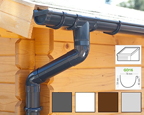 Für Ihr Gartenhaus, Ihre Veranda, Ihre Überdachung oder ein anderes Gebäude mit einem abschüssigen Pultdach benötigen Sie nichtsdestotrotz eine einzelne Dachrinne, und hinwieder an der niedrigsten Seite. So können Sie das Regenwasser auffangen (zum Beispiel in einer Regentonne) oder in den Garten unterlassen. Dafür eignet sich dieses komplette Dachrinnen Set. Es enthält die Gesamtheit Teile die Sie statt dessen die Montage benötigen: