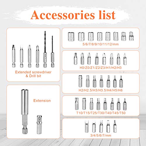 【45 IN1 HERVORRAGENDER SCHRAUBENDREHERSATZ】Exklusive DECMAY-Treiberbits für verschiedene Anwendungen, für große Arbeiten, wie z. holzarbeiten im Freien, wird empfohlen, auf ein effizienteres Produkt umzusteigen. für die Möbelmontage, die Installation von Mini-Jalousien, anderen Fensterabdeckungen und Montage von Dekorationsregalen.