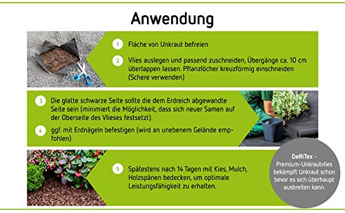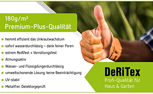 DeRiTex 180 g/m² – Unkrautvlies bzw. Unkrautschutzvlies „Premium Plus“ (L) 25 m x (B) 1,0 m