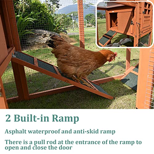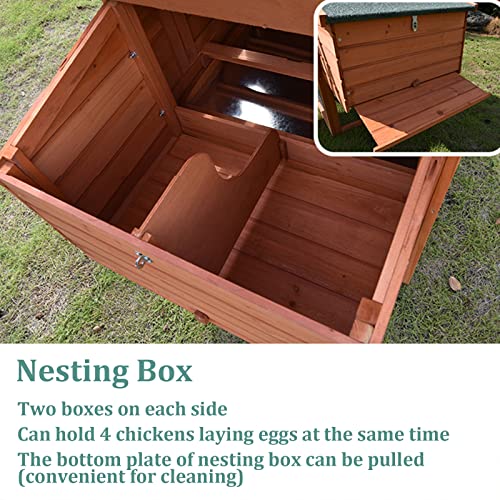 DOPPELTES HÜHENHAUS UND NISTBOXEN: 2 Haupthaus und 2 Nistkästen auf beiden Seiten des Stalls bieten Ihren Hennen reichlich Platz zum Spielen und zum Legen ihrer täglichen Eier. Leer Nistkasten beherbergt 2 Nistplätze, sodass Sie in diesem Stall bis zu 4 Hühner gleichzeitig unterbringen können.