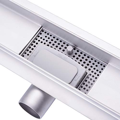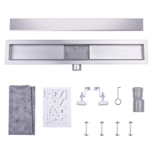 Multi-Funktional: Diese elegante Duschrinne wird komplett mit eingebautem Geruchsstop und Haarsieb geliefert, sodass unangenehme Gerüche effizient vermieden werden und das Wasser problemlos verlaufen kann. Alle beide Teile können zwecks Reinigung einfach herausgenommen werden.