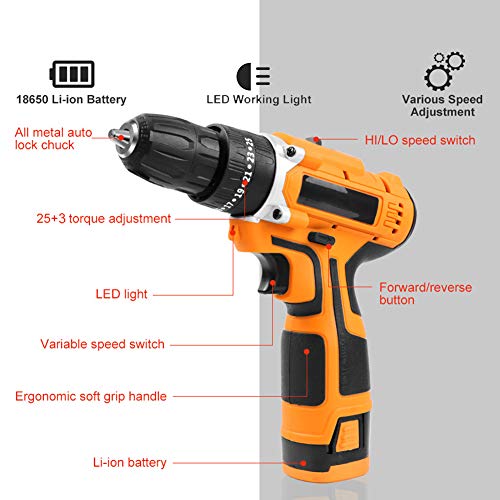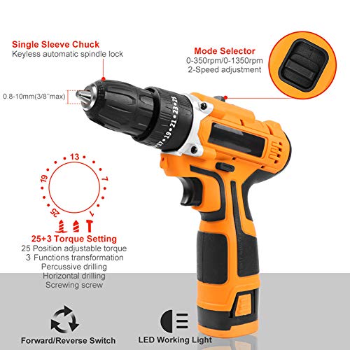 [DOPPELGESCHWINDIGKEITEN FÜR BREITE ANWENDUNGEN] Der Speicherzelle-Schraubendreher verfügt über 2 variable Geschwindigkeiten: 0-350 U / min und 0-1350 U / min, die für die breite Palette von Bohr- und Schraubenantriebsanwendungen nach Maß sind.