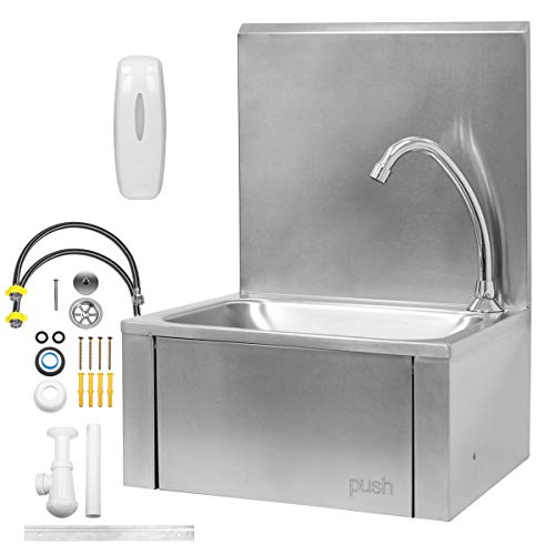 ECD Germany Handwaschbecken mit Wasserhahn ca. 34 x 40 x 56,5 cm – aus Edelstahl – Volumen 8 L – Kniebedienung – inkl…