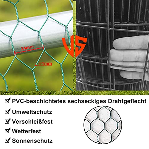 🐐【PVC-beschichtetes sechseckiges Drahtgeflecht】Hühnerstall aus PVC beschichtetem sechseckigem Drahtgeflecht, phänomenal und langlebig. Kleine Lücken zwischen den Gittern erhöhen die Sicherheit Ihrer Hühner und schützen sie vor einigen Raubtieren.