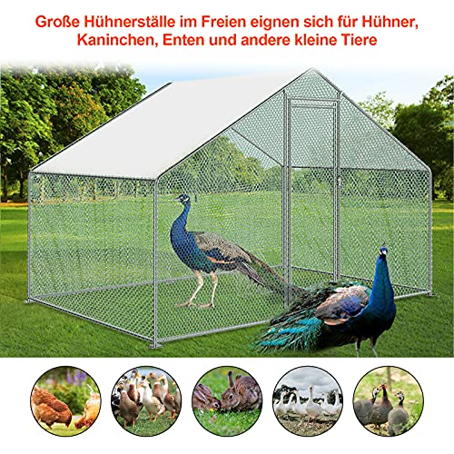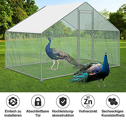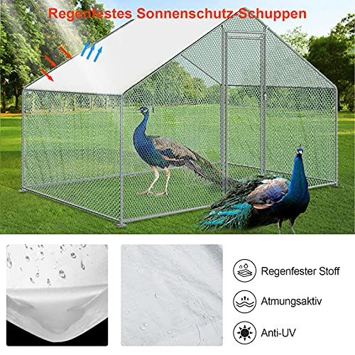 🐓【Langlebige Stahlkonstruktion】Hühnerstall Hergestellt aus hochwertigem Stahlrahmen, Abmessungen: 3 x 2 x 2 m (B x T x H), für Geflügel, um freien Raum im Inneren zu verkaufen und einfach zu installieren oder zu in schwere See kommen und einfach zu bedienen ist.
