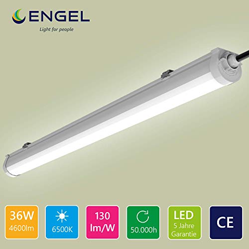 Universelle LED Feuchtraumleuchte für Parkhäuser, Industriehallen, Keller, Werkstätten, Garagen, Terrassen, Sporthallen, Fitnessräume, Hobbyräume und rundweg für allen überdachten Außenbereiche.