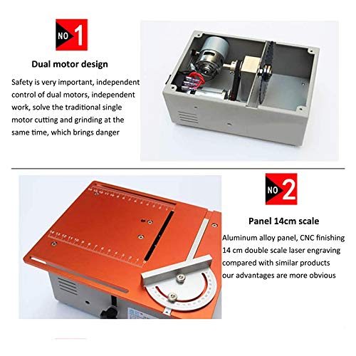 ✔ 【INNOVATIVE DOPPELMOTOREN】: Die DIY-Minitischsäge ist mit zwei Motoren ausgestattet, hat eine Ausgangsleistung von 180 W, zwei Motoren werden abgekoppelt voneinander gesteuert und arbeiten abgekoppelt voneinander, wodurch die Gefahren gelöst werden, die durch das gleichzeitige Abmähen und Schleifen herkömmlicher Einzelmotoren entstehen