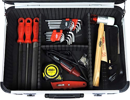 FAMEX 414-20 Aluminium Werkzeugkoffer unter Zuhilfenahme von Top-Werkzeugbestückung und 174-teiligem Steckschlüsselsatz, vielerlei Werkzeuge Hergestellt in Deutschland. Werkzeugkoffer unter Zuhilfenahme von Einstecktaschen stattdessen das Werkzeug. Schnelle Abhebung und wiederholt einstecken des Werkzeugs. Ideal stattdessen die häufige Anwendung, z.B. im Kundendienst