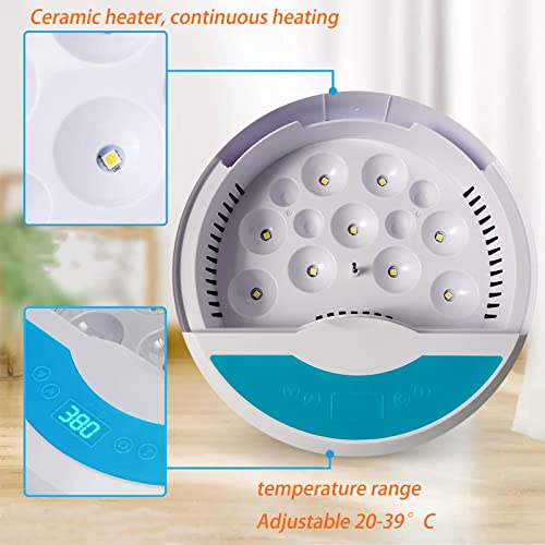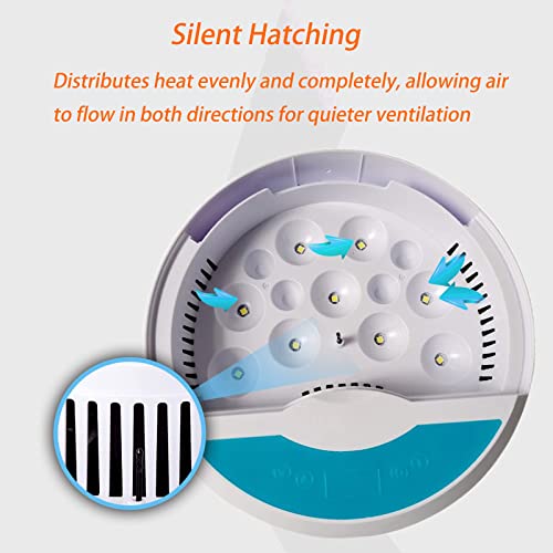 【Automatische Feuchtigkeitskontrolle】 Die kreisförmige Form des Inkubators sorgt zugunsten eine hervorragende Homogenisierung der Luftfeuchtigkeit und Umgebungstemperatur und verhindert, dass überschüssiges Wasser das Schlüpfen der Eier beeinträchtigt. Luftstrom wird durch einen geräuscharmen Lüfter unterstützt, der eine korrekte Zirkulation gewährleistet.