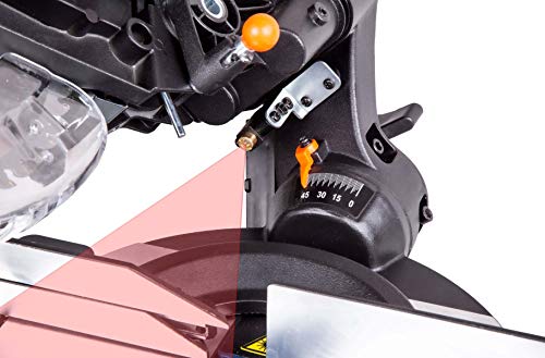 Laserführung; die Laserführung an der Maschine ist ein absoluter Vorteil. Das macht das präzise und genaue Schneiden von Holzstücken zu einem Kinderspiel.