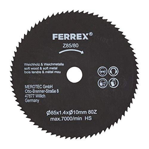 -710 Watt Leistungsfähigkeit -Leerlaufdrehzahl: 5.300 U/min -Schnitttiefe: ca. 0–25 mm -Sägeblatt-Ø: ca. 85 mm -10-mm-Bohrung -Qua Schnittlinienlaser, Staubsaugeranschluss im Übrigen -Spindelarretierung -230 V~50 Hz -Qua Soft-Abreise -Inkl. 2. Henkel -Zusatz: HSS-Sägeblatt 80 Gebiss, Ø: 85 mm, HSS–Sägeblatt 60 Gebiss, Ø: 85 mm, HSS-Sägeblatt 24 -Gebiss, Ø: 85 mm, Diamant-Sägeblatt, Ø: 85 mm, -Tiefenanschlag, Staubsaugeradapter, -Ersatzkohlebürsten, Pool anstatt Laser, Kunststoffkoffer Qua geprägtem FERREX-Logo SGS GS geprüfte Bürgschaft