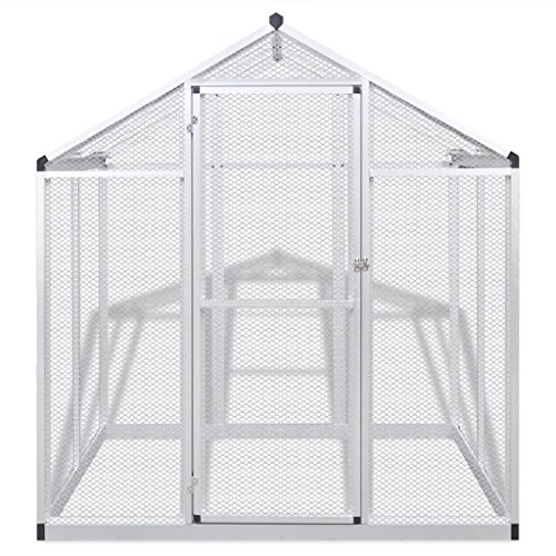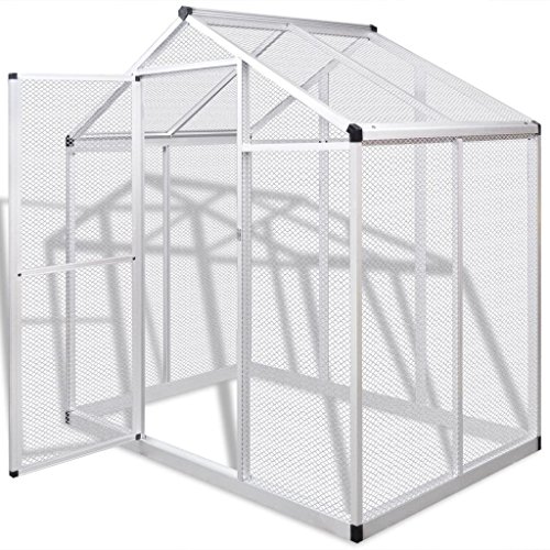Dank der robusten und wartungsfreien Aluminiumkonstruktion ist diese begehbare Voliere mit ihrer Schwerlast-Tür allerdings langlebig