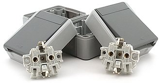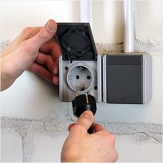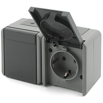 Die Rangfolge „fontana“ vereint schlichte Eleganz mit hoher Funktionalität speziell für die Montage in Feuchträumen oder im Außenbereich. Das System zeichnet sich durch schraublose Kontakte aus, die Ihnen massenweise Zeit beim Einbau der Elemente ersparen. Die Produkte dieses Schalterprogramms werden komplett inklusive AP-Rahmen geliefert. Die Komponenten dieses Schalterprogrammes bestehen aus einem bruchsicherem Material mit einer glatten Oberfläche in grau.