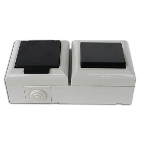 Feuchtraum Kombination Steckdose Anschalteinrichtung waagerecht Putz, IP54 10A/250V Hausbacken, VDE zertifiziert