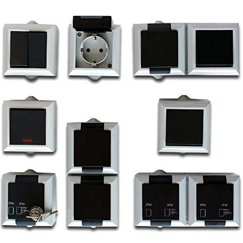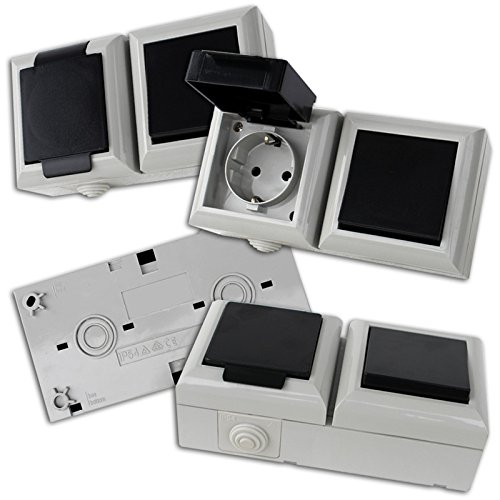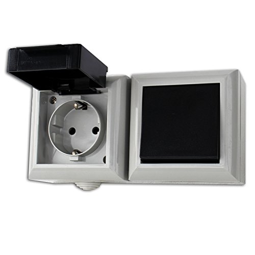 Feuchtraum Kombination Steckdose Schalter waagerecht Aufputz, IP54 10A/250V grau, VDE zertifiziert