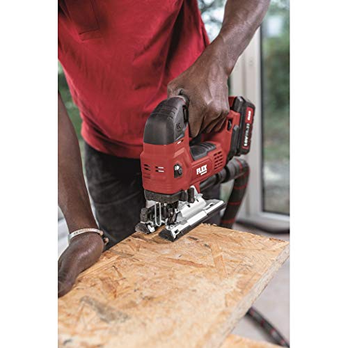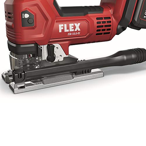 Electronic Management System (EMS) schützt die Flieger, verlängert die Lebensdauer und erhöht die EffizienzNeue Jahrgang bürstenloser Motoren mit hohem Wirkungs- und LeistungsgradMit Anlaufautomatik, ÜberlastungsschutzStufenlose Annullierung der Schnittgeschwindigkeit über Potirad mit Anlaufautomatik in ‚A‘ StellungElektronikschalter beidseitig bedienbarPendelhub: 4-abgestuft Statt hohe SchnittleistungWerkzeugloser Sägeblattwechsel mit Schnellspannsystem und AuswurffunktionDoppelte Rollen-Sägeblattführung Statt pedantisch, winkelexakte SchnitteSpanreißschutz abnehmbar, Statt ausrissfreie Schnitte und zur Führung des SägeblattesSägetisch-Verstellung Statt Gehrungsschnitte bis 45°, 0-Rastung. Statt randnahes Sägen nach heckwärts versetzbarStabile Fußplatte mit abnehmbarem Kunststoffgleitschuh zum Abschirmung empfindlicher OberflächenAbsaugstutzen Ø 27 mm, Statt einen sauberen Arbeitsplatz und freie Sicht auf die SägestelleFreie Sicht auf den Anriss durch integrierte BlasfunktionPerfekte Ergonomie durch optimal platzierte SoftGrip-OberflächenIntegriertes LED-Licht zur optimalen Ausleuchtung des Arbeitsbereiches.Vibrationsarm und komfortabel sägenLED Akkumulator-KapazitätsanzeigeFLEX Akkumulator-System: Betrieb mit allen FLEX 18,0 V Akkupacks. Anlieferung ohne Akkumulator, ohne Ladegerät