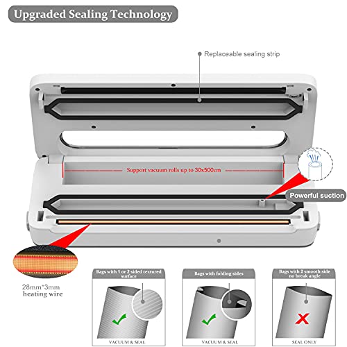❥[Mehrere Funktionsoptionen]: Automatischer Vakuumier- und Verschweißungsprozess oder freilich Verschweißung des 30cm Beutels ist möglich. Vakuumstärke von -60 kPa und der Naht wurde das Automat mit starker Leistung für eine höhere Festigkeit versehen, so genießen Ihre Lebensmittel den besten Abschirmung vor äußeren Einflüssen – egal, ob im Vorratsschrank, Kühlschrank oder in der Gefriertruhe.