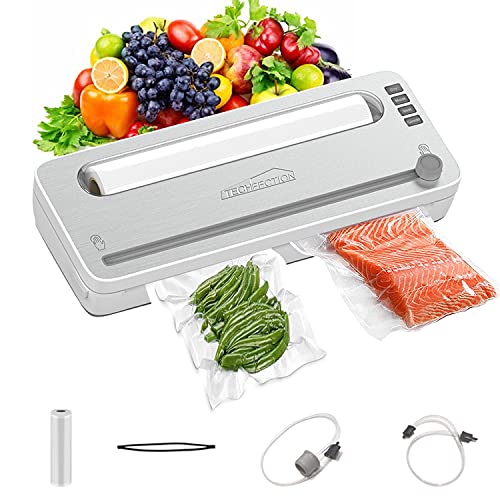 ❥[Lebensmittel frisch halten & weniger Abfall produzieren]: Verlängerung der Haltbarkeit Ihrer Lebensmittel wie Gemüse, Fleisch, Fisch, etc. um bis zu 8 Mal dank unseres leistungsstarken Vakuumiergerätes mit 120W und -60 kPa.