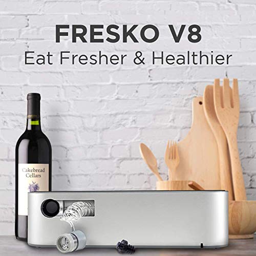 Multifunktionale Vakumiergerät Sous Vide: Der FRESKO V8 vakuumierer unterstützt trockene / feuchte Lebensmittel, Wein, jedweder Arten von Behältern, Vac-Seal und Unverheirateter Seal und hält Lebensmittel bis zu fünfmal länger frisch. Dieser feuchte Modus des vakuumierer ist schon eine perfekte Art, marinierte Lebensmittel aufzubewahren. Dies ist bekannt als der erste Fetzen beim Sous-Vide-Kochen.