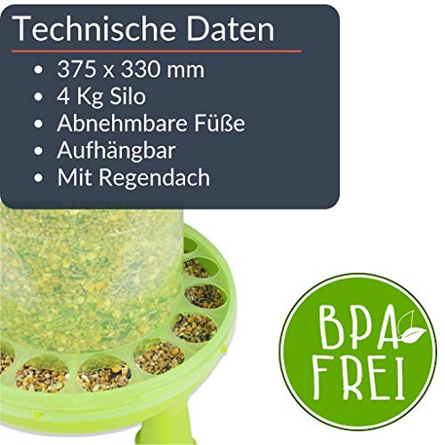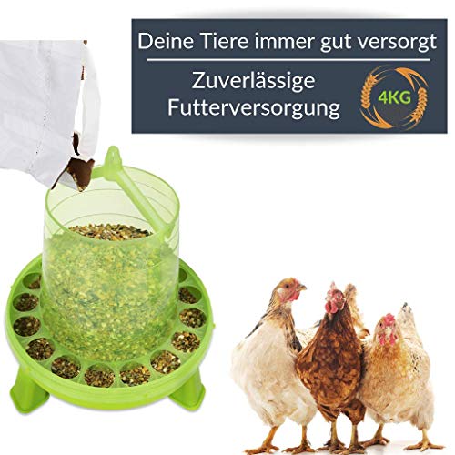 Futterautomat mit FüÃen mit 2, 4, 8, 12 und 16 kg grün I Hühner, Geflügel Futterspender I Automatischer Spender für Hühnerfutter I Futterstation aufhängbar I Wasserdichter Automat (4 kg)