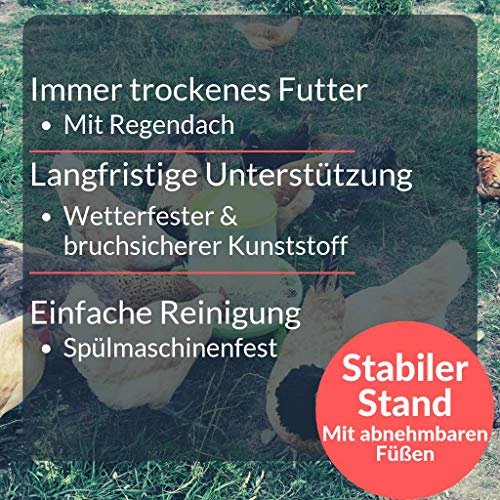 Zugunsten Ihre Tiere ungeachtet das Beste: Der bruchsichere Kunststoff ist lebensmittelecht und BPA-Frei. Ausgesprochen Brauchbar: Die wetterfeste Maschine ist spülmaschinentauglich, ein Regendach schützt das Futter vor Feuchtigkeit.