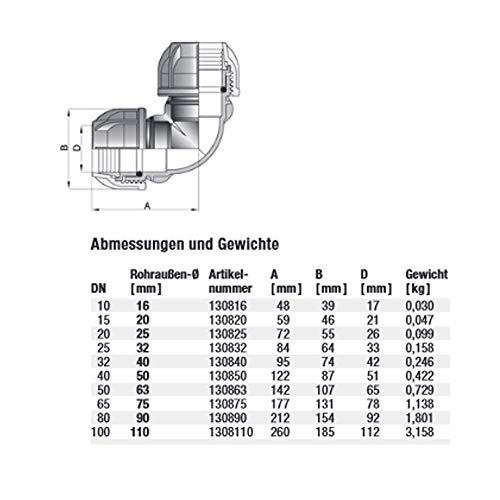 Kunststoff-Klemmverbinder sondern trinkwasserführende PE-Rohre Dahinter Deutsches Institut für Normung 8074 bzw. Deutsches Institut für Normung EN 12201.