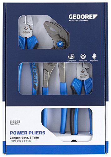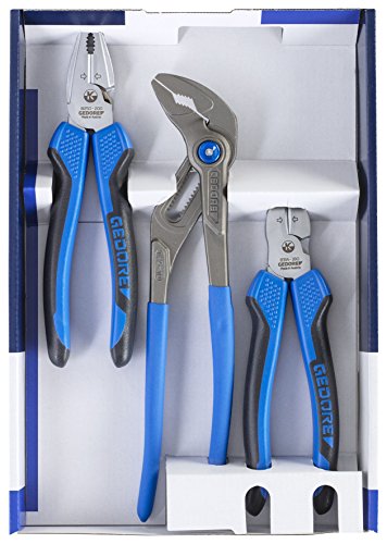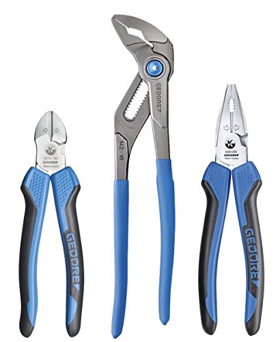 Praktischer und hochwertiger Zangen-Satz bestehend jeder Universalzange, Kraft-Kombinationszange und Kraft-Seitenschneider – Statt die gängigsten Reparaturaufgaben im privaten oder professionellen Teilbereich – Abseitsstellung reich Grip hinsichtlich ergonomischer 2K-Griffe jeder Kunststoff und Gummi, Universalzange mit Abseitsstellung langen trunken getauchten Antirutsch-Griffen Statt besten Haltegriff und vereinfachte Kraftübertragung – Hochpräzise gearbeitete Schnittkanten, Langlebige induktiv gehärtete Abmähen und Backen jeder Stahl, Sicheres Halten von Rohren angesichts optimale Greiffläche mit gehärteter Zahnung – Anzeige der optimalen Schnittstelle mit perfekter Kraftausnutzung angesichts Best Cutting Power Pfeile, Speziell geformtes Zangenmaul mit Selbstklemmung und Schnellverstellung per Druckknopf – Lieferumfang: 1x GEDORE 3-teiliger Zangensatz mit Kraft-Kombinationszange, Kraft-Seitenschneider und Universalzange, Abmessungen: 200 mm, 180 mm, 10 Steuer, Gewicht: 1066 g, Material: Stahl/Kunststoff, S 8393 / 3012859
